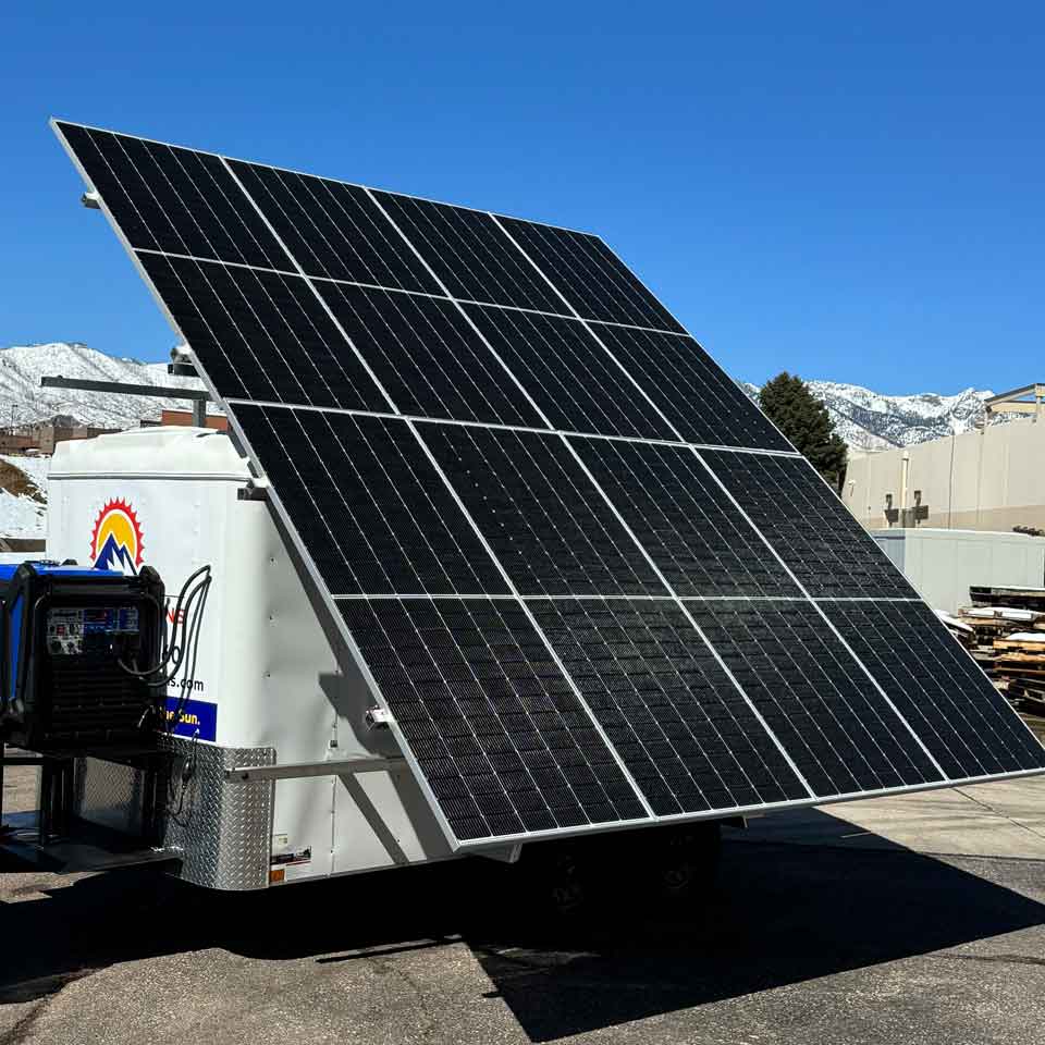 Our standard trailer is perfect for remote job sites and local events! This solution has been proven in the field to provide clean and quiet power to any location. Whether its construction work or 20 plus bounce houses or even a band playing in the park, this can do it all. Learn more about this solution here.
